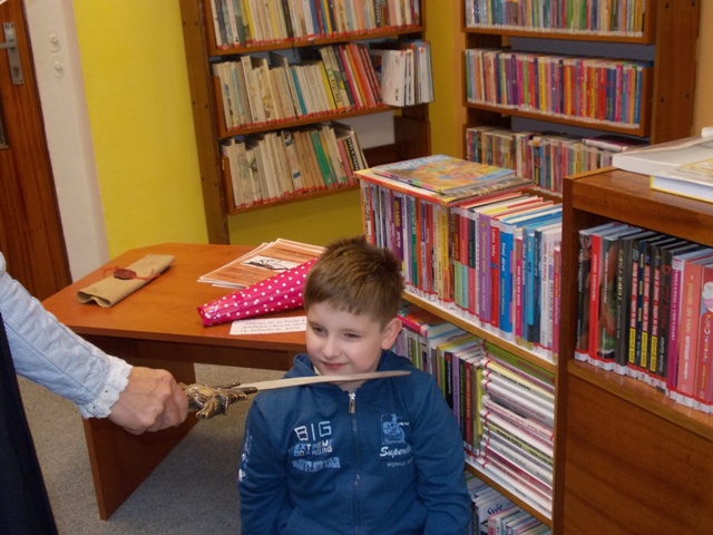 Po krátkém proslovu, byly děti pasovány středověkým pážetem do „Rytířského řádu čtenářského“. Každý „rytíř“ si odnesl na památku „Upomínkový list“, rozvrh hodin, záložku do knihy a společně velký kornout bonbónů, společné foto a doufám, že i hezký zážitek.