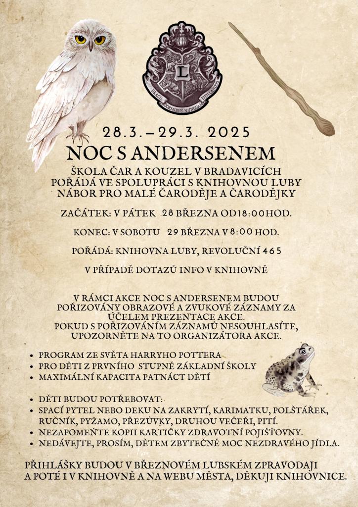 Akce proběhla poklidně. Děti byly rozděleny na tři soutěžní týmy. Havraspár, Nebelvír a Zmijozel. Pomocí kouzelného plánku potřebovaly vyluštit šifry, splnit úkoly a najít skrytá písmena tajenky aby se jim otevřeli kouzelné dveře do knihovní síně. Nejrychlejší tým výhral. První byl Havraspár, druhý Nebelvír a v těsném závěsu pár setin třetí Zmijozel.